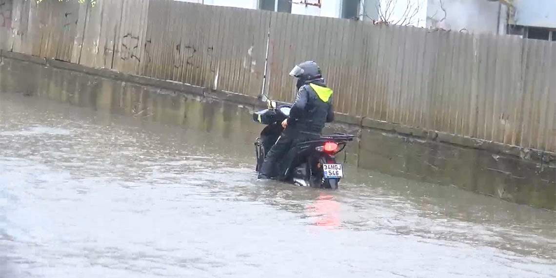 Sarıyer’de yağışın ardından caddeyi su bastı, araçlar mahsur kaldı. Belediye ekipleri caddedeki suyu tahliye etmek için çalışma başlattı.