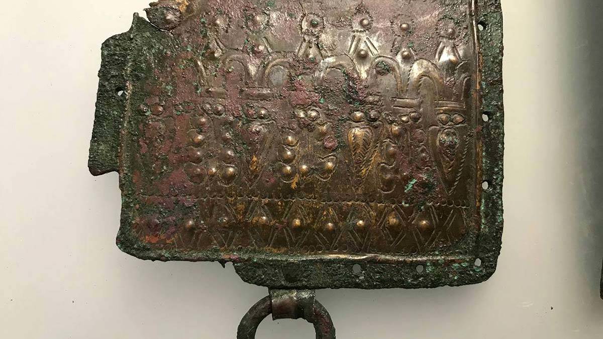 Gümüşhane’de bulunan Satala Antik Kenti’ndeki kazılarda Urartu savaşçısının olduğu düşünülen bronz kemer bulundu
