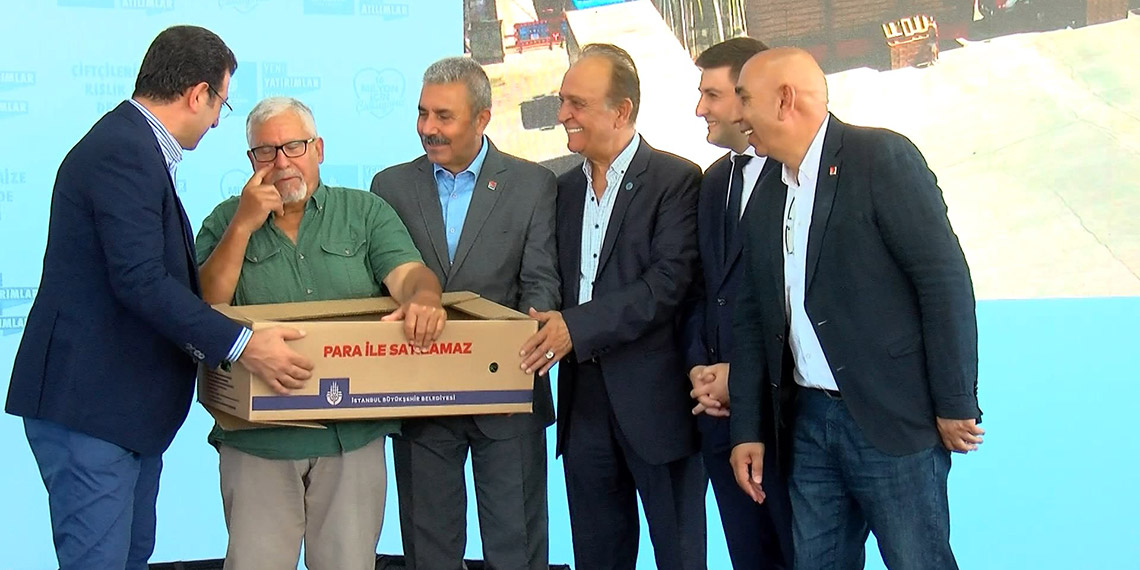 İmamoğlu, “Göreve geldiğimizden bu yana, bakın bizim verilerimiz değil TÜİK verilerine göre, göreve geldiğimizden bu yana İstanbul’da tarım yapılan alan tam 50 bin hektar büyüdü. Bu aslında siz fırsat verdiğinizde, İstanbul’da tarımla ne kadar değerli işler yapabileceğini, İstanbul’un ürettiği sahalardan İstanbullunun evine, mutfağına daha ucuz gıda temininin var olacağını, yine aynı şekilde İstanbullunun moralini arttıracak şekilde, gıda güvenliği açısından da hem güvenli hem lezzetli gıda ile buluşabileceğini biz insanlarımıza ispat ettik” diye konuştu.