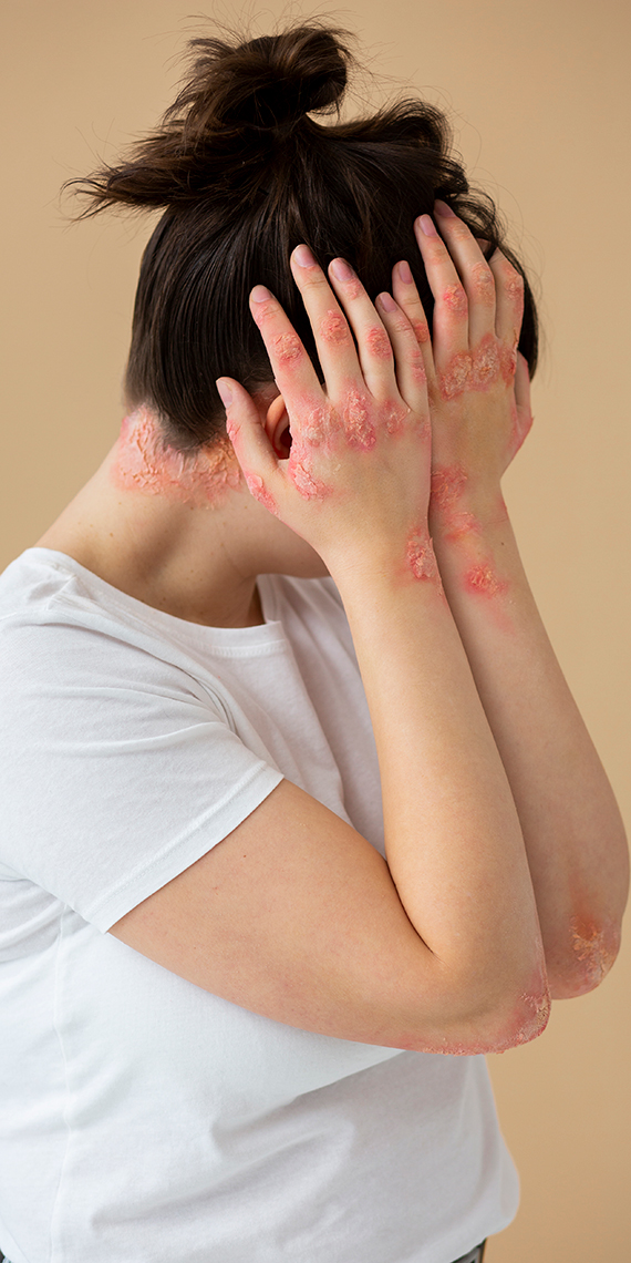 Bu hastalık, genellikle cilt hücrelerinin aşırı hızlı bir şekilde üremesi sonucu ciltte kalın, kırmızı lezyonlara ve pullanmalara neden olan bir durumdur. Normalde cilt hücreleri bir döngü içinde olgunlaşır, yüzeye doğru ilerler ve ardından dökülerek cilt yüzeyini yeniler. Ancak sedef hastalığı olan kişilerde bu süreç hızlanır ve cilt hücreleri normalden çok daha hızlı bir şekilde üretilir.