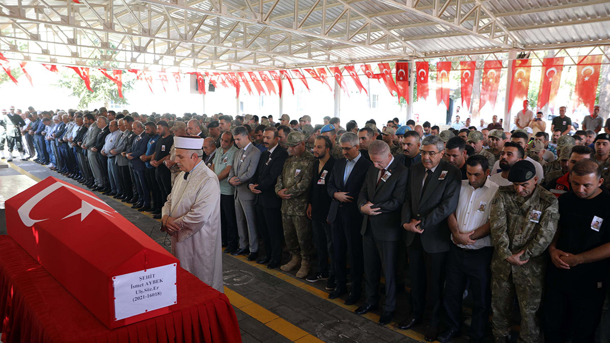 Şanlıurfa’nın Suriye sınırında bulunan Esentepe Hudut Karakolu’na PKK/YPG’li teröristler tarafından dün düzenlenen roketatarlı saldırıda Sözleşmeli Er İsmet Aybek şehit oldu. İlhak ve Meryem Aybek çiftinin 4 çocuğunun en küçüğü olan İsmet Aybek için Yeşilkent Mezarlığı’ndaki Kaplan Kardeşler Camisi’nde tören düzenlendi.