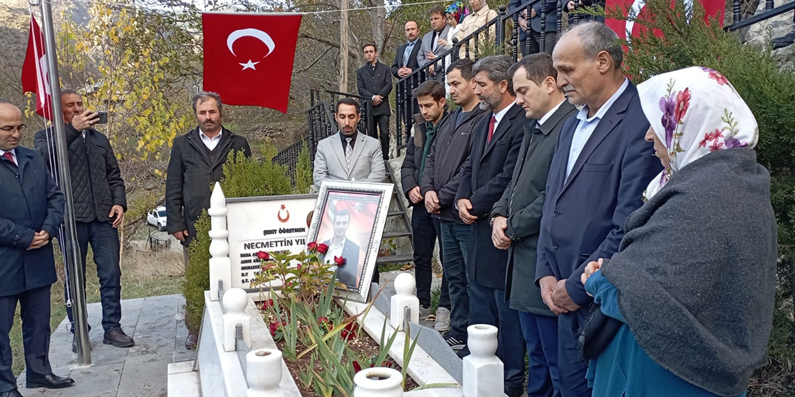 Tunceli’de, PKK’lı teröristler tarafından kaçırılıp şehit edilen Necmettin öğretmen, 24 Kasım Öğretmenler Günü’nde Gümüşhane’deki kabri başında dualarla anıldı.