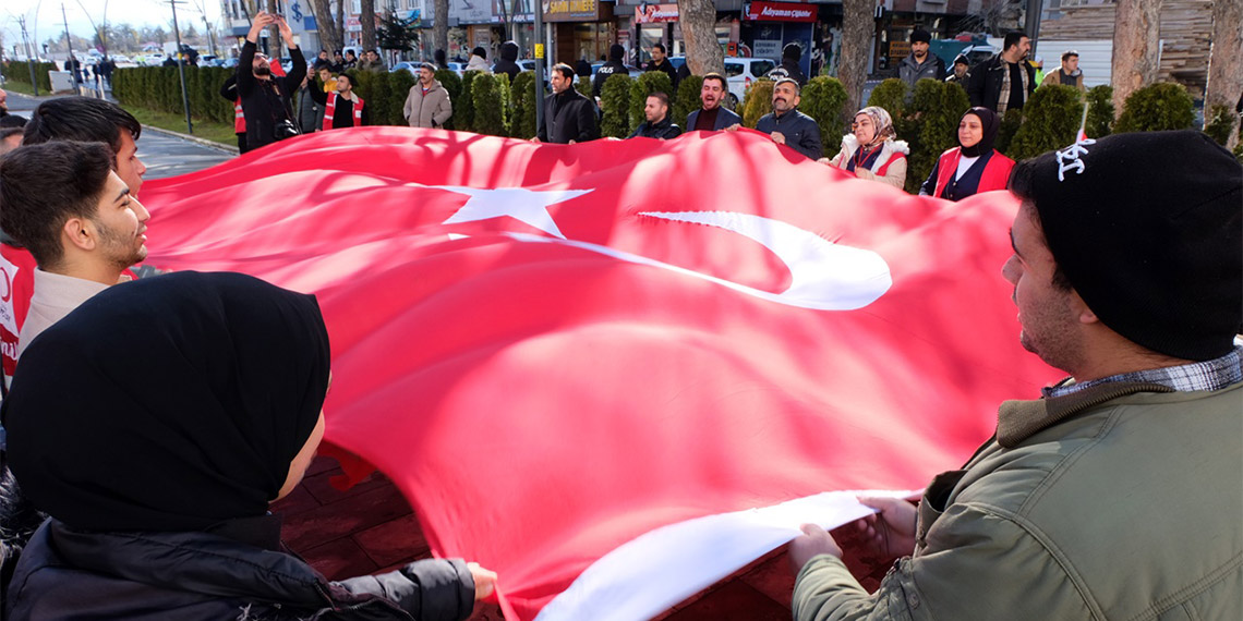 Bingöl’de Pençe-Kilit Harekatı bölgesinde şehit olan 9 asker için Teröre Lanet eylemi düzenlendi. Ellerinde Türk bayrakları bulunan grup, sık sık “Şehitler ölmez, vatan bölünmez” ve “Kahrolsun PKK” sloganları attı.