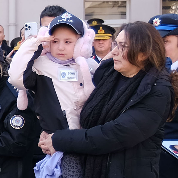 Şehit polis memuru Onur Şirin’in (37) cenazesi, memleketi Isparta’nın Yalvaç ilçesine uğurlandı. Törende 6 yaşındaki Gülce, şapkasını taktığı şehit babasını selam vererek uğurladı.