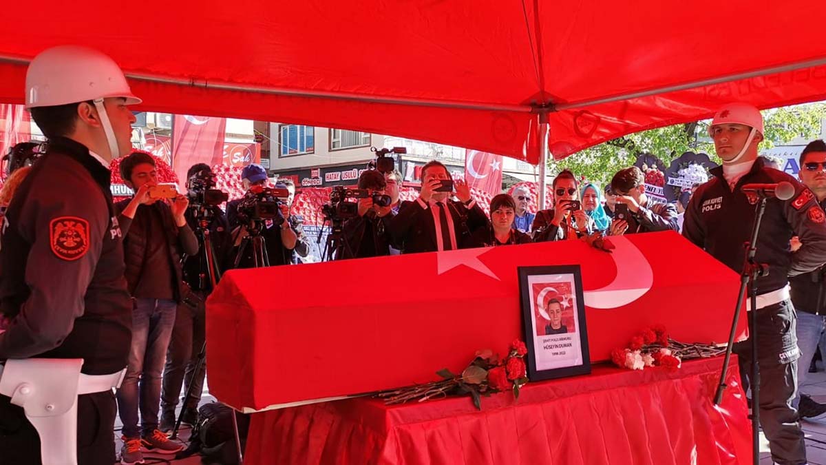 2 ay önce evlendiği öğrenilen şehit polis memuru için Cumhuriyet Meydanı’nda tören düzenlendi. Törene, şehidin babası Mustafa, annesi Sultan, eşi Müge Duman ve yakınlarının yanı sıra İçişleri Bakan Yardımcısı İsmail Çataklı, Ordu Valisi Tuncay Sonel, CHP Milletvekilli Mustafa Adıgüzel, Emniyet Genel Müdürü Mehmet Aktaş, Büyükşehir Belediye Başkanı Mehmet Hilmi Güler, İl Emniyet Müdürü Doğu Ateş, İl Jandarma Komutanı Kıdemli Albay Numan Öksüz, Ünye Kaymakamı Ayhan Işık, Ünye Belediye Başkanı Hüseyin Tavlı, birlikte görev yaptığı meslektaşları ile çok sayıda vatandaş katıldı.