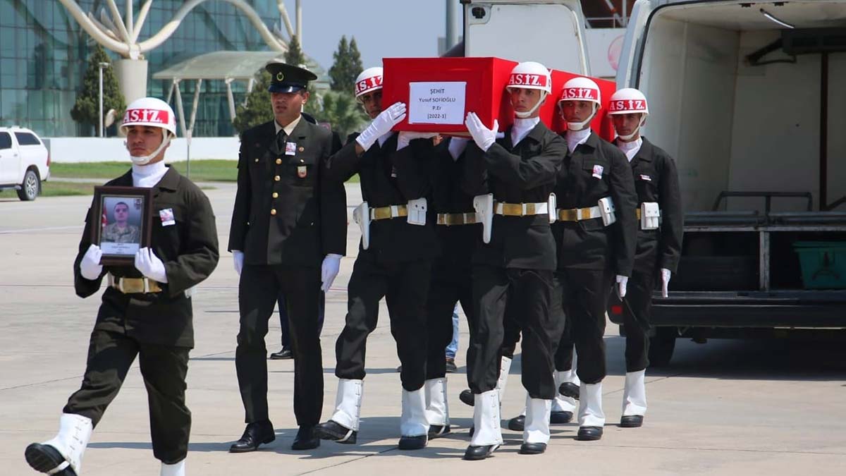 Hatay’ın Altınözü ilçesinde 29 Temmuz’da meydana gelen zırhlı araç kazasında yaralanan, kaldırıldığı hastanede bugün şehit düşen Piyade Er Yusuf Sofioğlu için Hatay Havalimanı’nda tören düzenlendi. Törene şehidin ailesi, Vali Rahmi Doğan ile askeri ve mülki erkan katıldı. Şehidin naaşı, törenin ardından uçakla memleketi Diyarbakır’a uğurlandı.