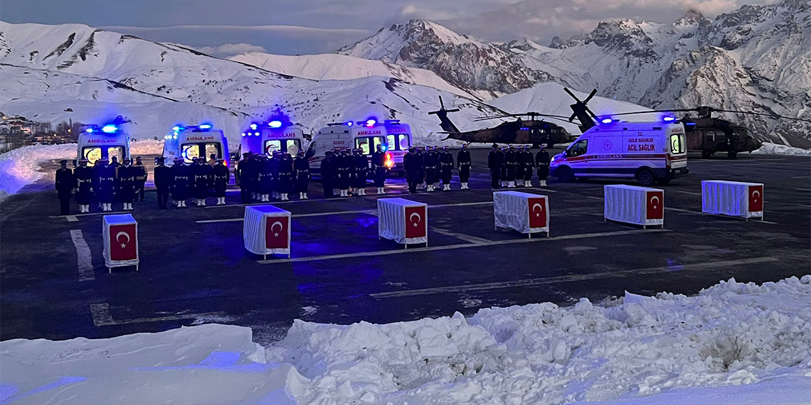 Şehitlerin cenazelerinin tören alanına getirilmesinin ardından öz geçmişleri okundu. Yapılan duaların ardından Piyade Teğmen Ramazan Günay; İzmir’e, Piyade Uzman Çavuş Mehmet Serinkan; Denizli’nin Tavas ilçesine, Piyade Uzman Onbaşı İsmail Yazıcı; Zonguldak’ın Karadeniz Ereğli ilçesine, Piyade Sözleşmeli Er Yasin Karaca Tokat’ın Almus ilçesine, Piyade Sözleşmeli Er Çağatay Erenoğlu; Sinop’un Boyabat ilçesine ve Piyade Sözleşmeli Er Emre Taşkın’ın cenazesi Malatya’ya gönderilmek üzere helikopterle Yüksekova Selehattin Eyübbi Havaalanına gönderildi. Şehitler buradan da memleketlerine uğurlanacak.