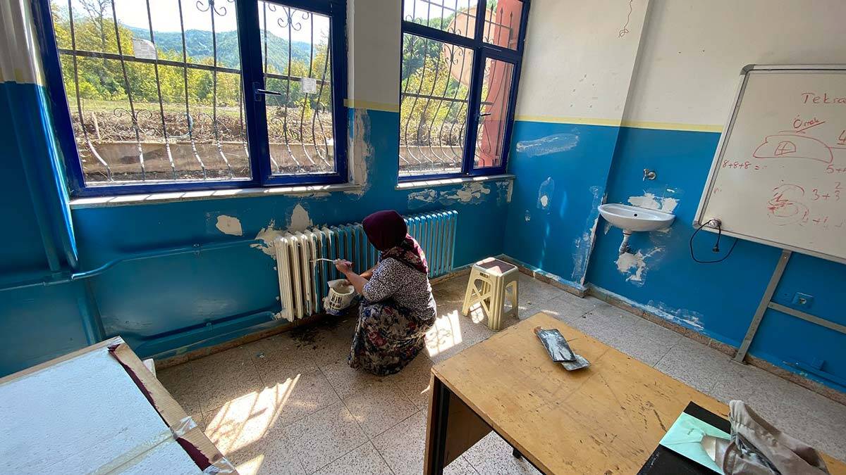 Bartın’ın Ulus ilçesine bağlı Zafer köyünde bulunan 10 derslikli selden zarar gören 2 katlı ilkokul, eğitim-öğretime hazır hale getiriliyor.
