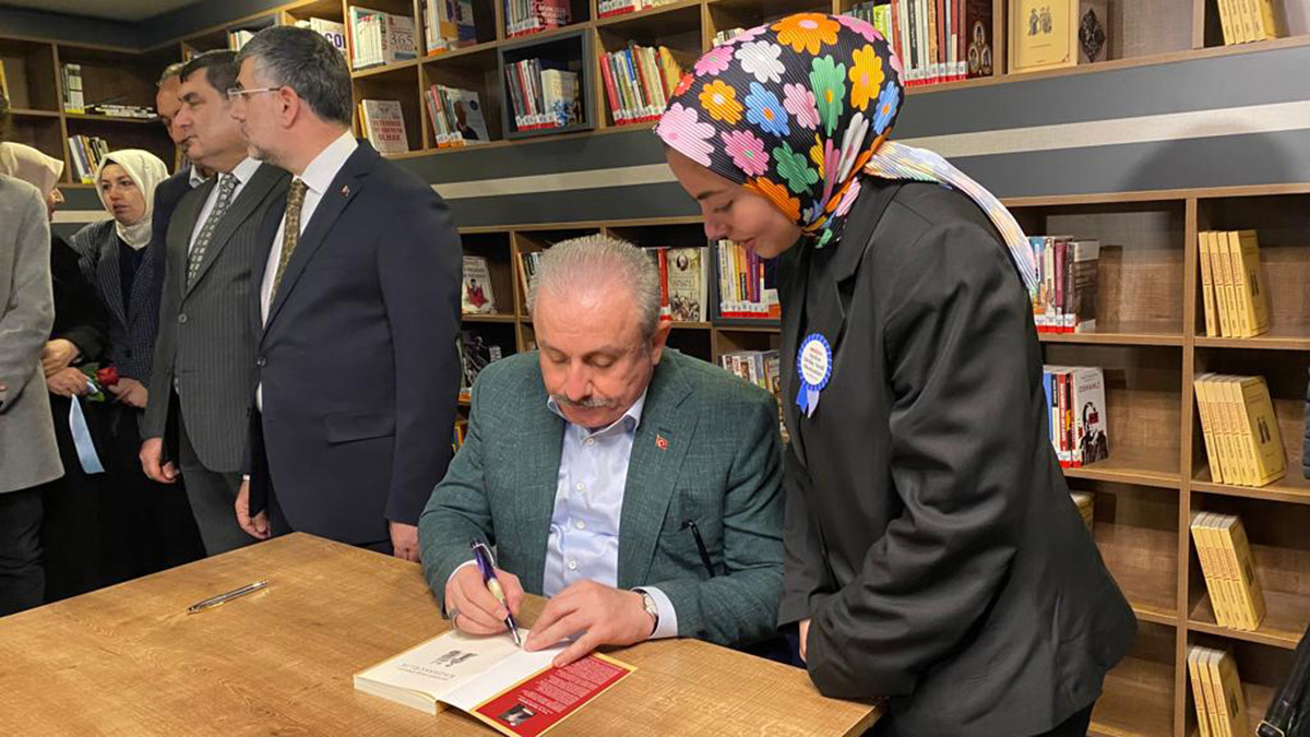 Konuşmanın ardından gerçekleşen kurdele kesimi sonrasında Mustafa Şentop, tesisin araştırma salonunda lise öğrencilerleriyle bir araya gelerek kitap imzaladı.