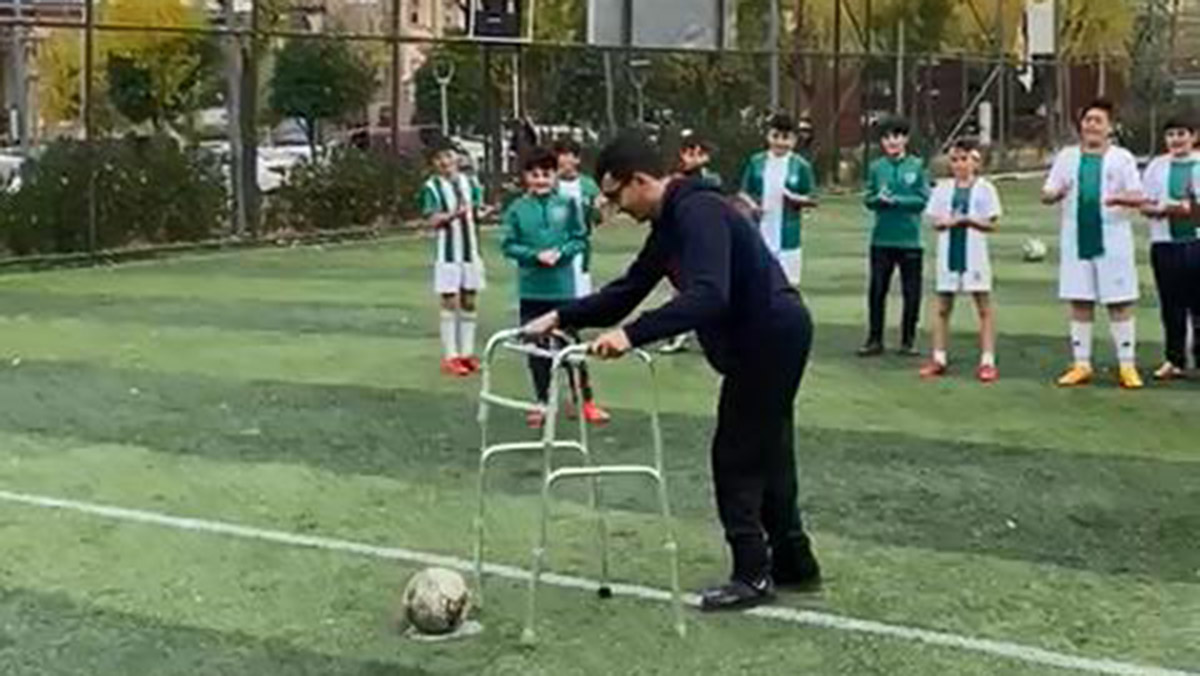 Bursa’da Serebral palsili Alperen Fatih Altuntaş (21), hayalini, kardeşi Eray’ın (9) antrenmanında penaltı atışı yaparak gerçekleştirdi.