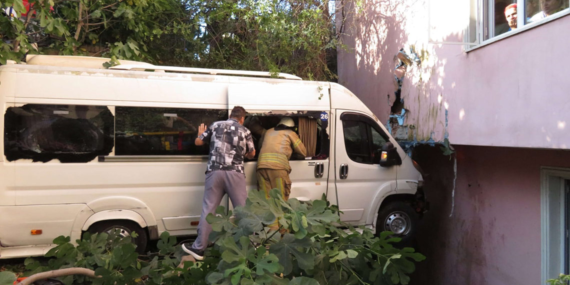 Buralarda araç olurdu. Yukarıdan herhalde hızlı gelmiş. Ağaçları kesiyor bariyerleri aşıyor uçarak binaya vuruyor. Sonra da yere düşüyor. İşe gidilen saatlerde kimse geçmemiş. Yoksa çok kişiyi buradan alırdı. Allah korumuş .” diye konuştu. Minibüsün çarptığı dairede oturan Cafer Gökçe ise, “Eve araba girdi dediler şimdi içeri gideceğim bakacağım hasar nedir diye. Eşim evdeydi çok korkmuş ve panik olmuş” şeklinde konuştu. Ekiplerin çalışmasının ardından kaza yapan servis minibüsü çekiciyle olay yerinden kaldırıldı. Polisin kazayla ilgili soruşturması sürüyor.