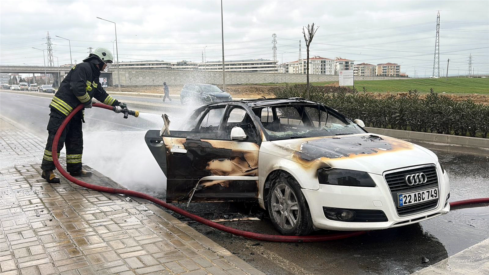 Olay, Nusratiye Mahallesi Kurtuluş Caddesi’nde meydana geldi. N.Ö. idaresindeki 22 Abc 749 plakalı otomobilden, seyir sırasında duman yükselmeye başladı. Durumu fark eden sürücü, aracı yol ortasında durdurarak kendini dışarı attı. Bir anda alevler büyürken, ihbarla bölgeye itfaiye, sağlık ve polis ekipleri sevk edildi.