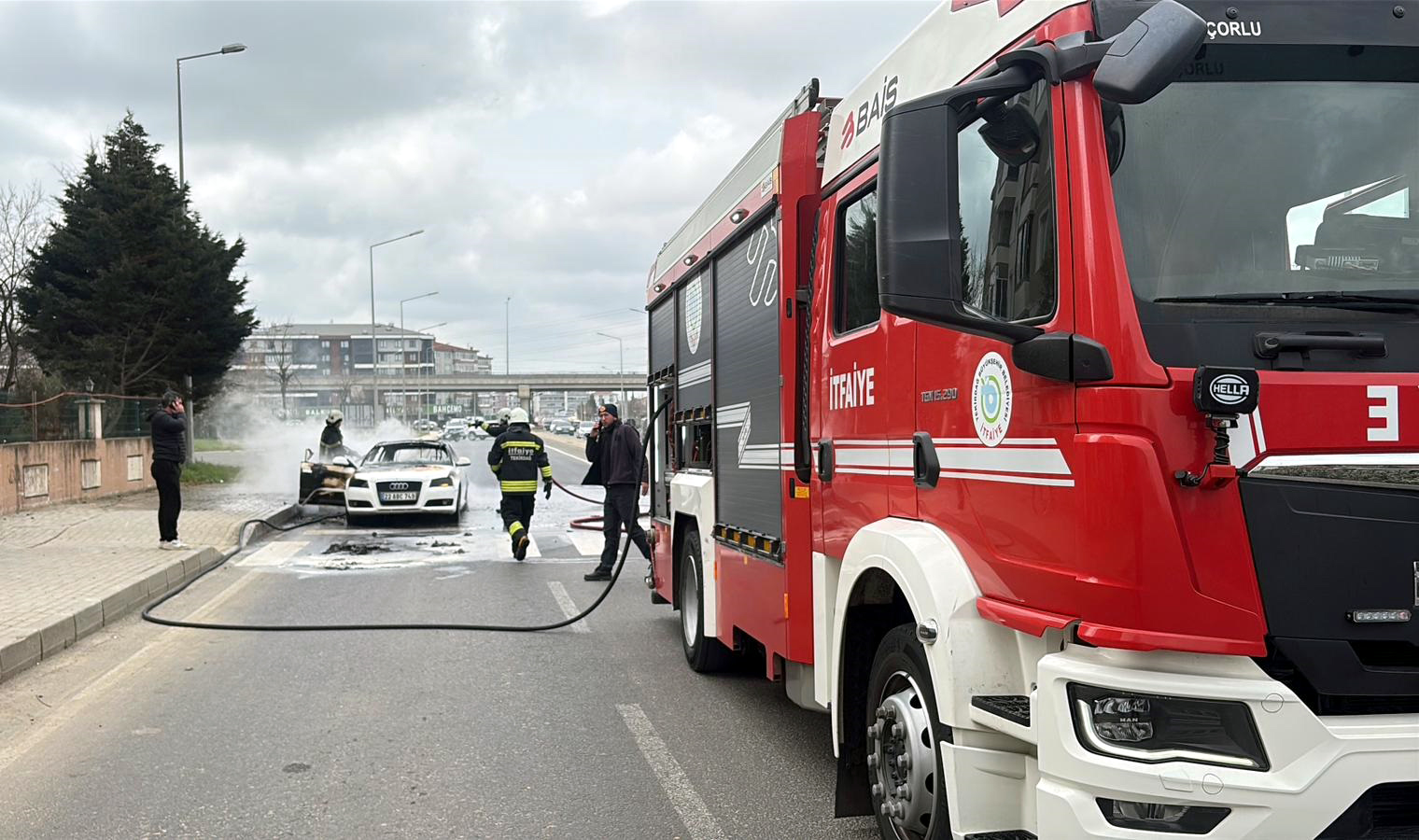 Tekirdağ’ın Çorlu ilçesinde seyir sırasında alev alan otomobil kullanılamaz hale geldi, sürücüsü son anda kurtuldu.