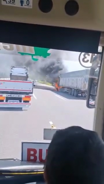 Olay, saat 14.00 sıralarında İnegöl-Bursa kara yolu Babasultan Mahallesi mevkisinde meydana geldi. Bursa'dan İnegöl istikametine giden Mehmet Ö. yönetimindeki 10 Er 225 plakalı TIR'ın motor kısmından duman yükselmeye başladı. Durumu fark eden sürücü, aracı yol kenarına çekerek 112 Acil Çağrı Merkezi’ne durumu bildirdi. Yangın ihbarla olay yerine gelen itfaiye ekipleri tarafından söndürülürken, o anlar yoldan geçen diğer sürücüler tarafından cep telefonu kamerasıyla görüntülendi.