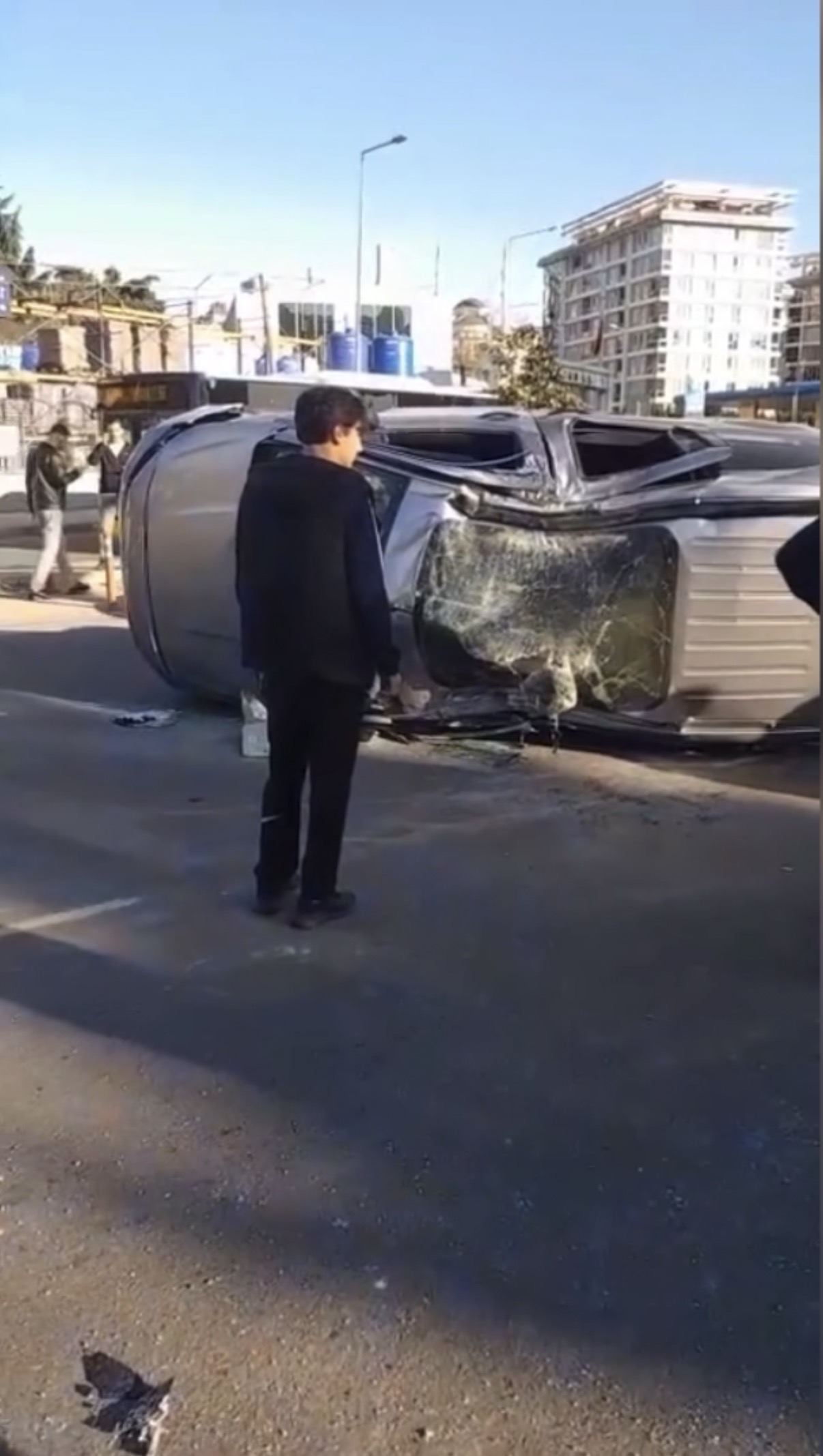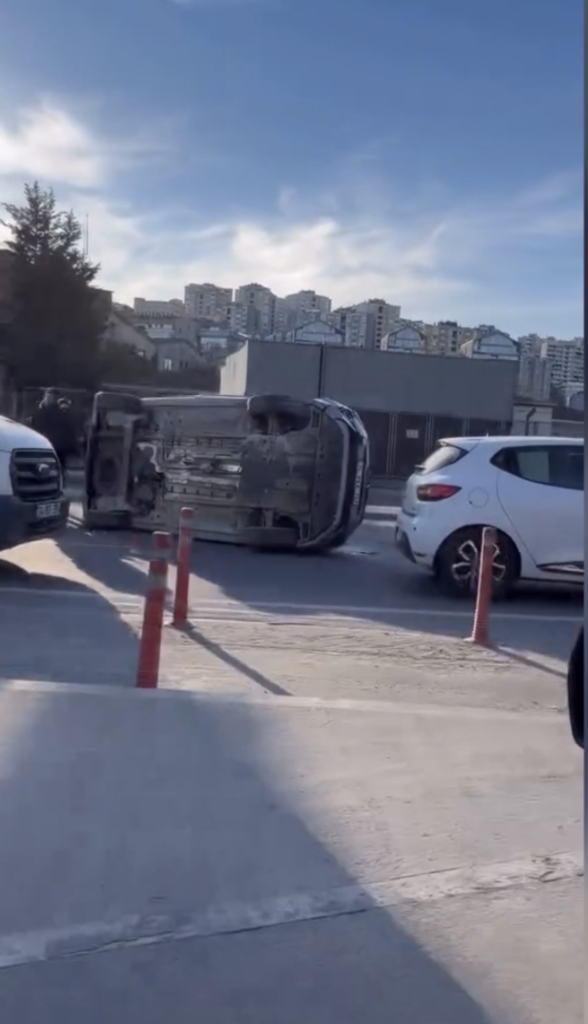 Çarpmanın etkisiyle takla atarak devrilen araca, aynı yönde ilerleyen İlyas M.’nin kullandığı araç arkadan çarptı. Kazada İlyas M. yaralanırken, kaza anı güvenlik kamerasına yansıdı.