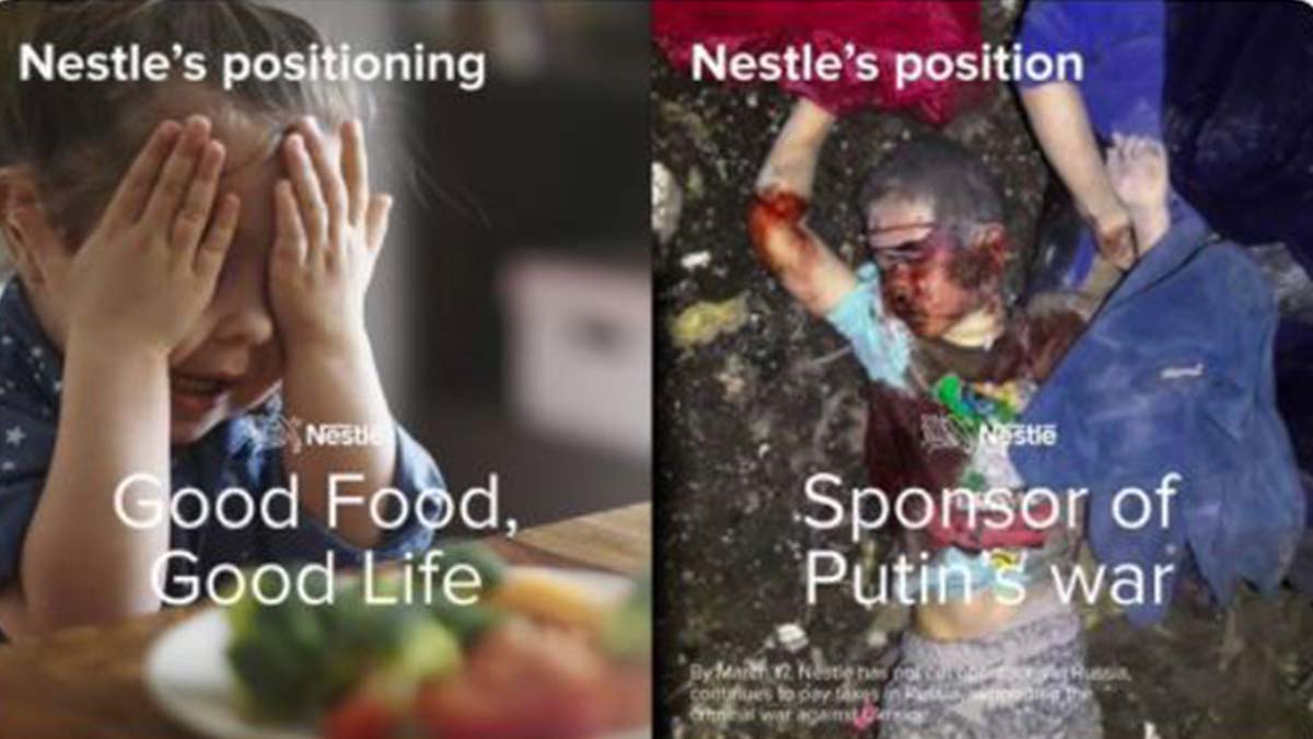 Kuleba, 17 Mart’ta açıklama yaparak Nestle’yi de Rusya’da operasyonlarını durdurmaya çağırarak “Nestle, Rusya’daki ticari faaliyetlerini durdurmayı reddederek, Rusya’nın Avrupa’daki saldırganlık savaşının devam etmesine izin veriyor. Şirketin itibarına yönelik uzun vadeli zarar, Ukrayna’daki Rus savaş suçlarının boyutuyla orantılıdır (muazzam). Fikrini değiştirmek için çok geç değil, Nestle” dedi.