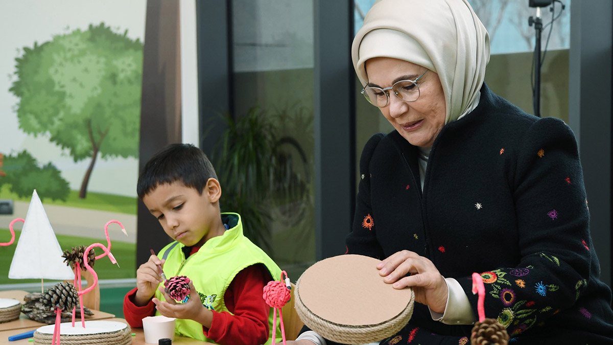 Emine Erdoğan’ın himayesinde yürütülen ‘Sıfır Atık Projesi’ kapsamında, Altındağ Belediyesi tarafından Başkent Millet Bahçesi’nde ‘Sıfır Atık Eğitim ve Simülasyon Merkezi’ kuruldu. Emine Erdoğan, burada düzenlenen törenle merkezin açılışını gerçekleştirdi. Ardından merkezi gezen Erdoğan, burada atölye çalışmaları kapsamında atık karton ve kozalaklardan flamingo maketi yapan çocukları izleyerek, onlarla sohbet etti. Altındağ Belediye Başkanı Asım Balcı ve Merkez Sorumlusu Güneş İpek’ten bilgi alan Erdoğan, daha sonra merkezde atıklardan yapılan ürünlerin sergilendiği bölümü gezdi.