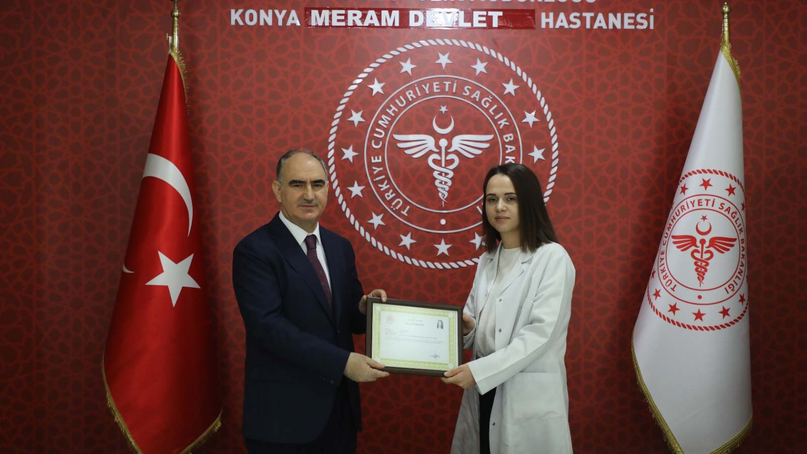 Konya Valisi Vahdettin Özkan, 3 kişinin öldüğü silahlı kavgadaki 3 yaralıdan 1’ini, hastanenin acil servisinde silah tehdidi altında tedavi edip, duran kalbini çalıştıran 1,5 yıllık doktor Furkan Berktaş ve diğer sağlık çalışanlarına ‘başarı belgesi’ verdi.