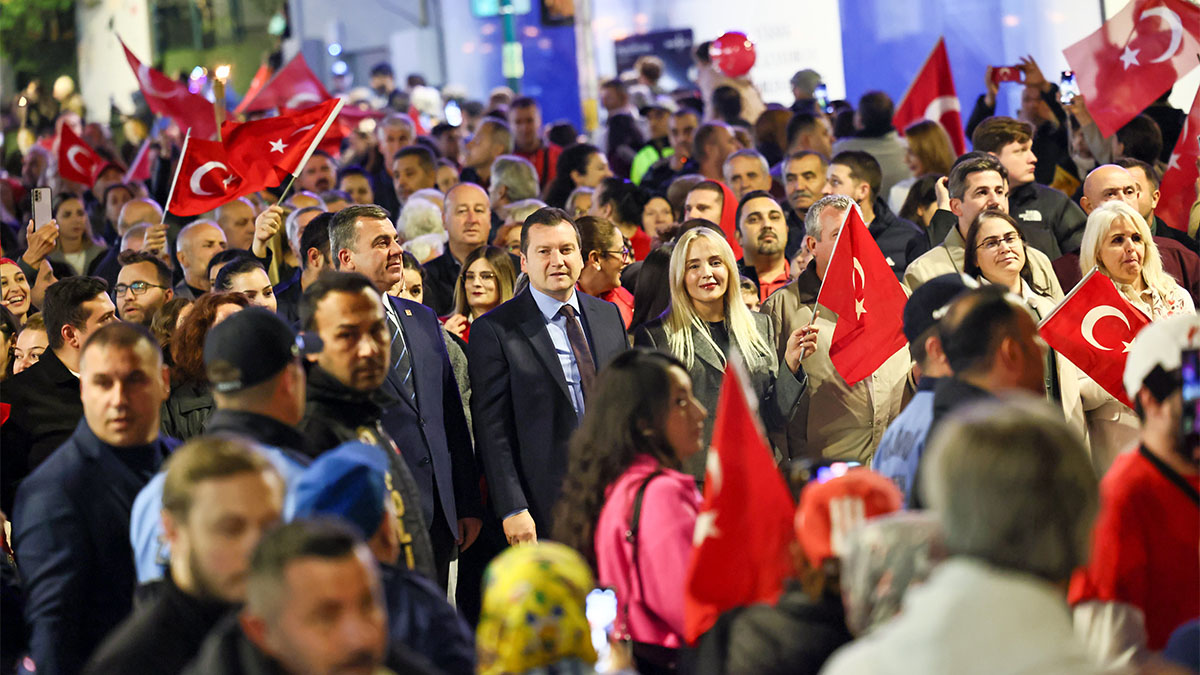Ve bugün, tam yüz iki yıl sonra Atatürk Meydanı’nda başımız dik, yüreğimiz bir. O büyük adımı atanlara saygıyla selam duruyoruz. Bayramımızı aynı inançla, kararlılıkla, coşkuyla ve gururla kutluyoruz.”