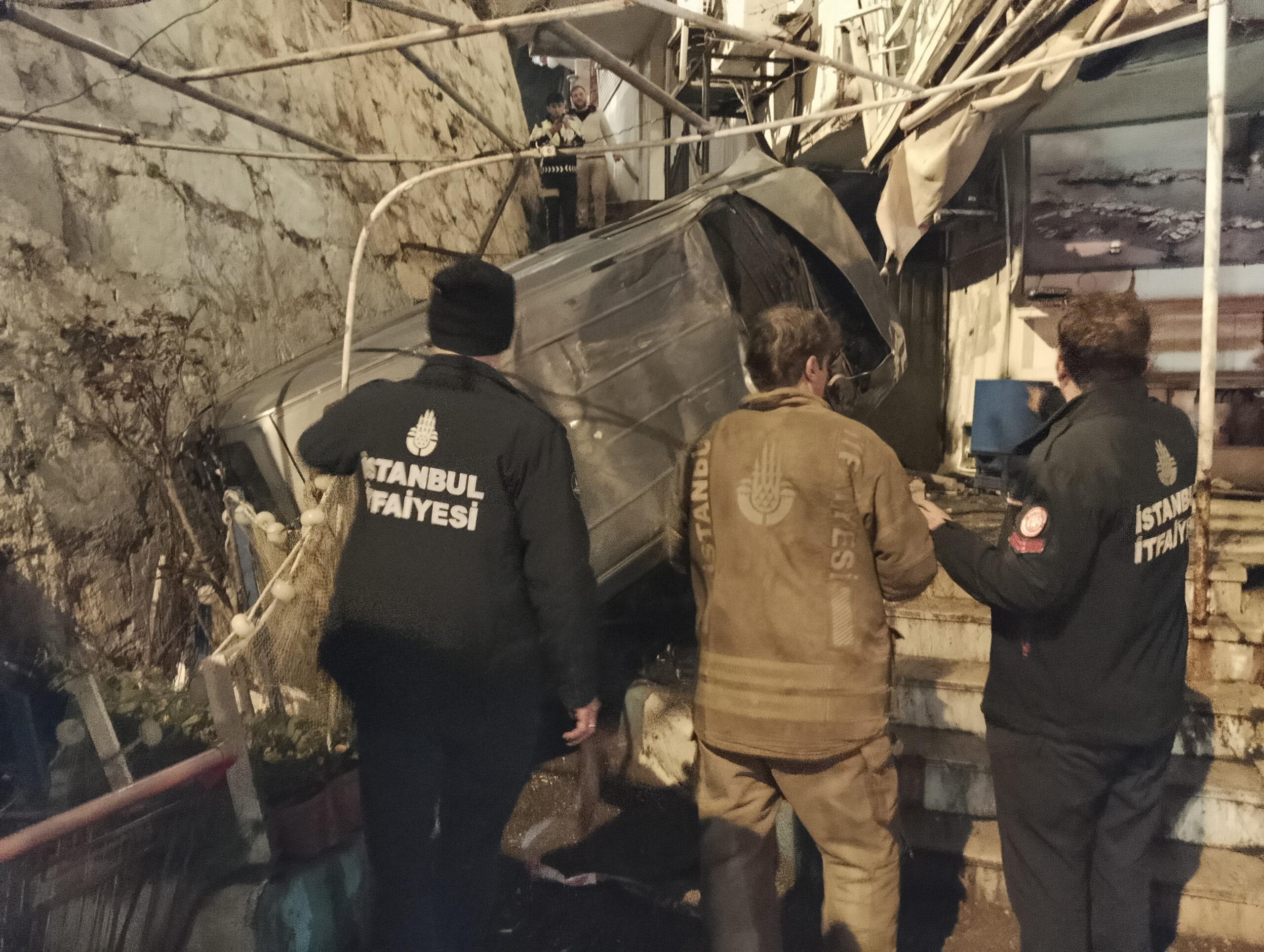 Kaza, saat 23.00 sıralarında Selimpaşa Liman'ında meydana geldi. Seyir halinde olan 34 Du 0711 plakalı hafif ticari araç, sürücüsünün direksiyon hakimiyetini kaybetmesi üzerine yoldan çıktı. Restoranın duvarına çarpan hafif ticari araç, 5 metre yükseklikten düştü. Kazada 2 kişi, araç içerisinde sıkıştı.