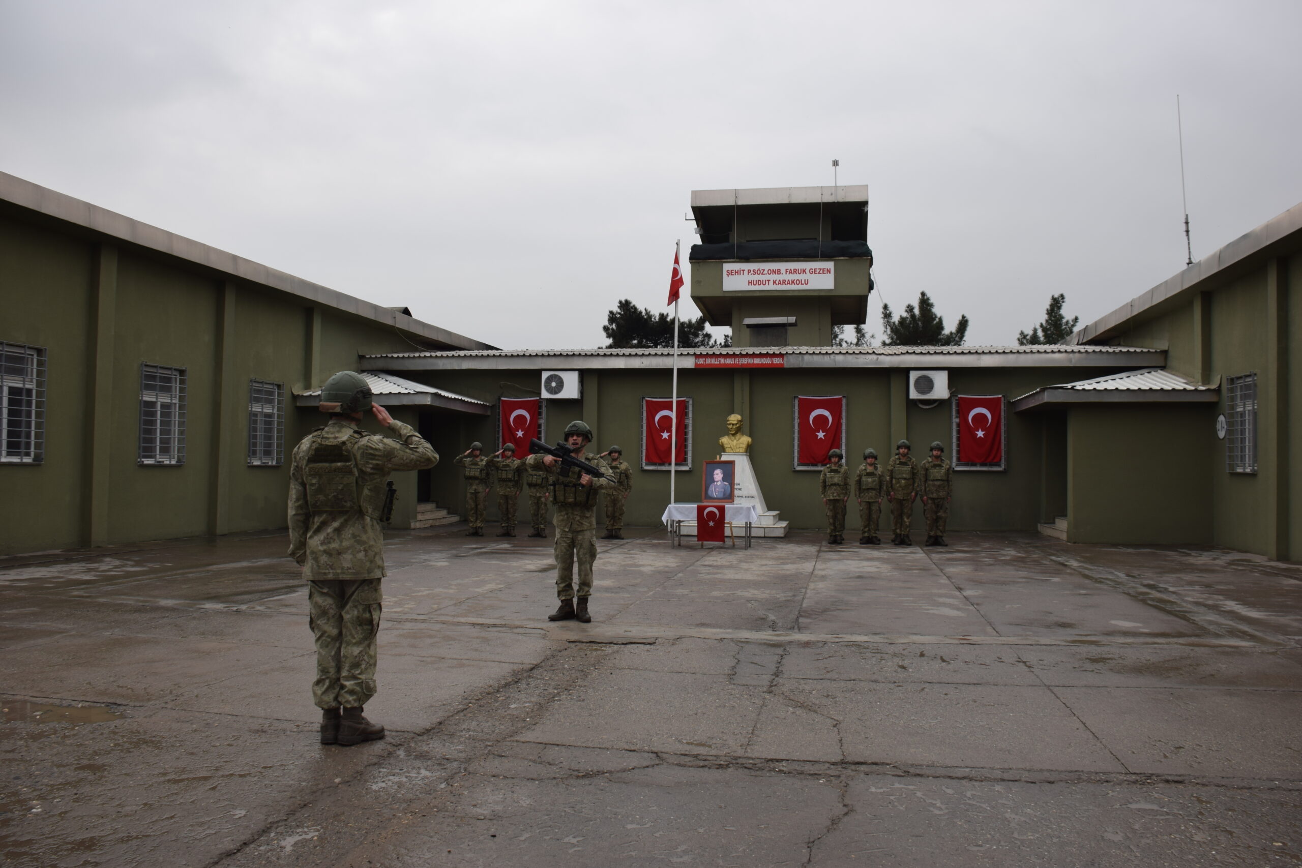 Türkiye-Suriye sınırında bulunan Nusaybin ilçesindeki Şehit Piyade Sözleşmeli Onbaşı Faruk Gezen Hudut Karakol Komutanlığı’nda vatani görevini yapan askerler, 7 gün 24 saat güvenliği tesis ediyor. Yerli ve milli silahlarla, gelişmiş termal kamera ve gece görüş dürbünleriyle sınırı 24 saat kontrol altında tutan Mehmetçik, hem gözetleme kulelerinde hem de görüntü izleme merkezinde sınır hattını kesintisiz izliyor, hudut hattındaki olayları dronla tespit ederek hızla bölgeye intikal ediyor.