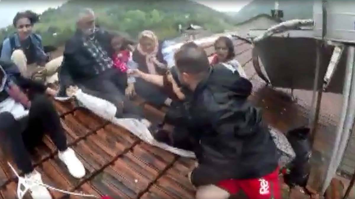 EVİN YIKILMASI VE ÇATILARDA YARDIM BEKLEYENLER KAMERADA