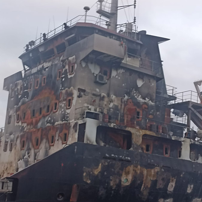Öte yandan Panama bayraklı kuru yük gemisindeki yangının boyutu, gün ağarınca ortaya çıktı. Büyük hasara neden olan yangında geminin özellikle kamara bölümünün küle döndüğü görüldü. Kaynağı araştırılan yangının, ilk incelemelere göre, geminin kamara bölümünden çıktığı, rüzgar ve dalga nedeniyle alevlerin hızla yayıldığı tespit edildi.