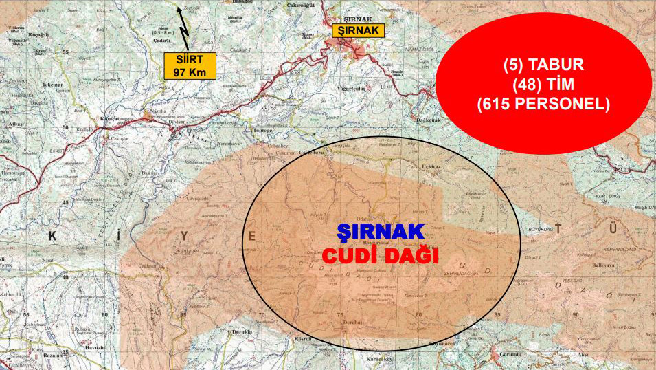 Bakanlıktan yapılan açıklamaya göre, PKK terör örgütünü ülke gündeminden çıkarmak ve bölgede barındığı değerlendirilen teröristleri etkisiz hale getirmek amacıyla Şırnak’ın Cudi Dağı bölgesinde, ‘Eren Abluka Sonbahar-Kış-11 Şehit Jandarma Teğmen İsmail Can Akdeniz Operasyonu’ başlatıldı.