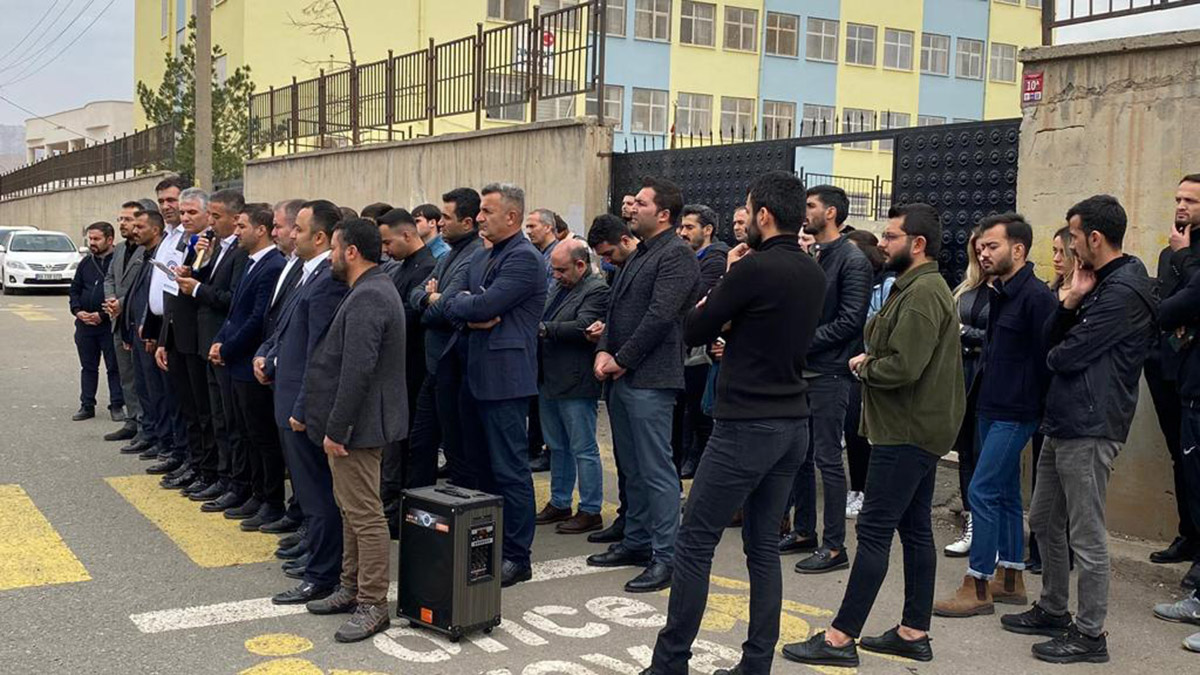 Okulun önünde toplanan eğitimciler yaşanan şiddet olayını protesto etti. Grup adına açıklama yapan Eğitim Bir-Sen Şırnak Şube Başkanı Abdullah Çatı, şunları söyledi:
