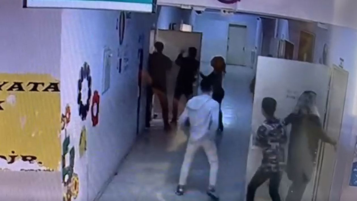 Şırnak’ın Cizre ilçesindeki ortaokulda öğrencinin ağabeyleri öğretmeni dövdü. Okul koridorunda yaşanan arbede anları güvenlik kamerasına yansıdı.