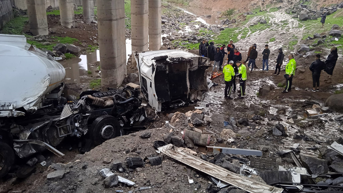 Kaza, sabah saatlerinde Çavuşkoy mevkisindeki Saklan Köprüsü’nde meydana geldi. Faruk Koçyiğit yönetimindeki tanker, kontrolden çıkarak bariyerlere çarpıp 15 metre yükseklikten düştü. İhbarla olay yerine sağlık, itfaiye ve jandarma ekipleri sevk edildi. Koçyiğit ile yanındaki kişi, sıkıştıkları yerden çıkarıldı. Ekipler, Koçyiğit’in hayatını kaybettiğini belirledi. Yaralanan kişi ise ambulansla Cizre Devlet Hastanesi’ne kaldırıldı. Kazaya ilişkin soruşturma sürüyor.