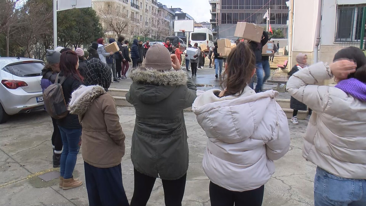 Şişli’de yardımların toplandığı bir diğer adres de Atatürk Ortaokulu oldu. Burada da, öğretmenler, öğrenciler, gönüllüler, çevik kuvvet polisleri toplanan yardımları okul bahçesinde oluşturdukları insan zinciriyle TIR’a taşıdı. Atatürk Ortaokulu’nda gönüllü olarak yardım zincirine katılan Tülin Gürel, “Tek yürek olduk, kaç gündür uğraşıyoruz. İnşallah hepsi yerlerine ulaşırlar.