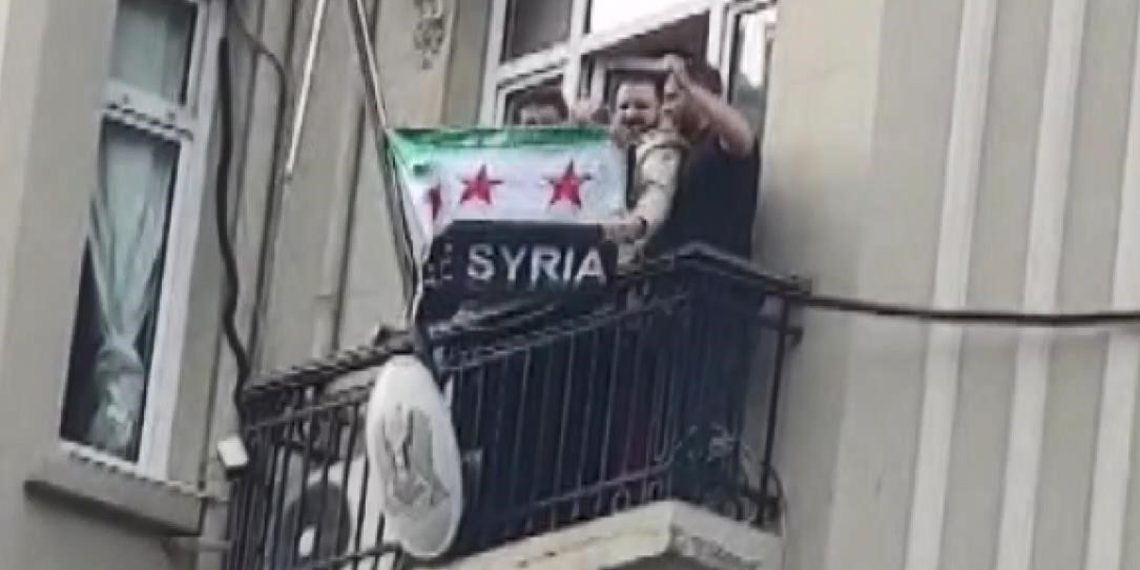 Muhaliflerin Şam’a girmesi ardından Şişli’deki Suriye Konsolosluğu binasında rejim bayrağı Pazar günü indirildi. Muhalifler binanın balkonunda üzerinde ‘Özgür Suriye‘ yazan bayrak açtı; bu sırada caddede bekleyenler sevinç gösterilerinde bulunarak sloganlar attı.