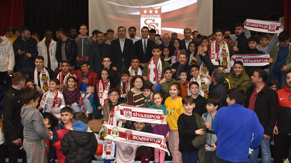Demir Grup Sivassporlu futbolcular, Sivas Binali Yıldırım Yurt Kampüsü’nde misafir edilen depremzede çocukları ziyaret ederek çocuklara forma hediye etti.