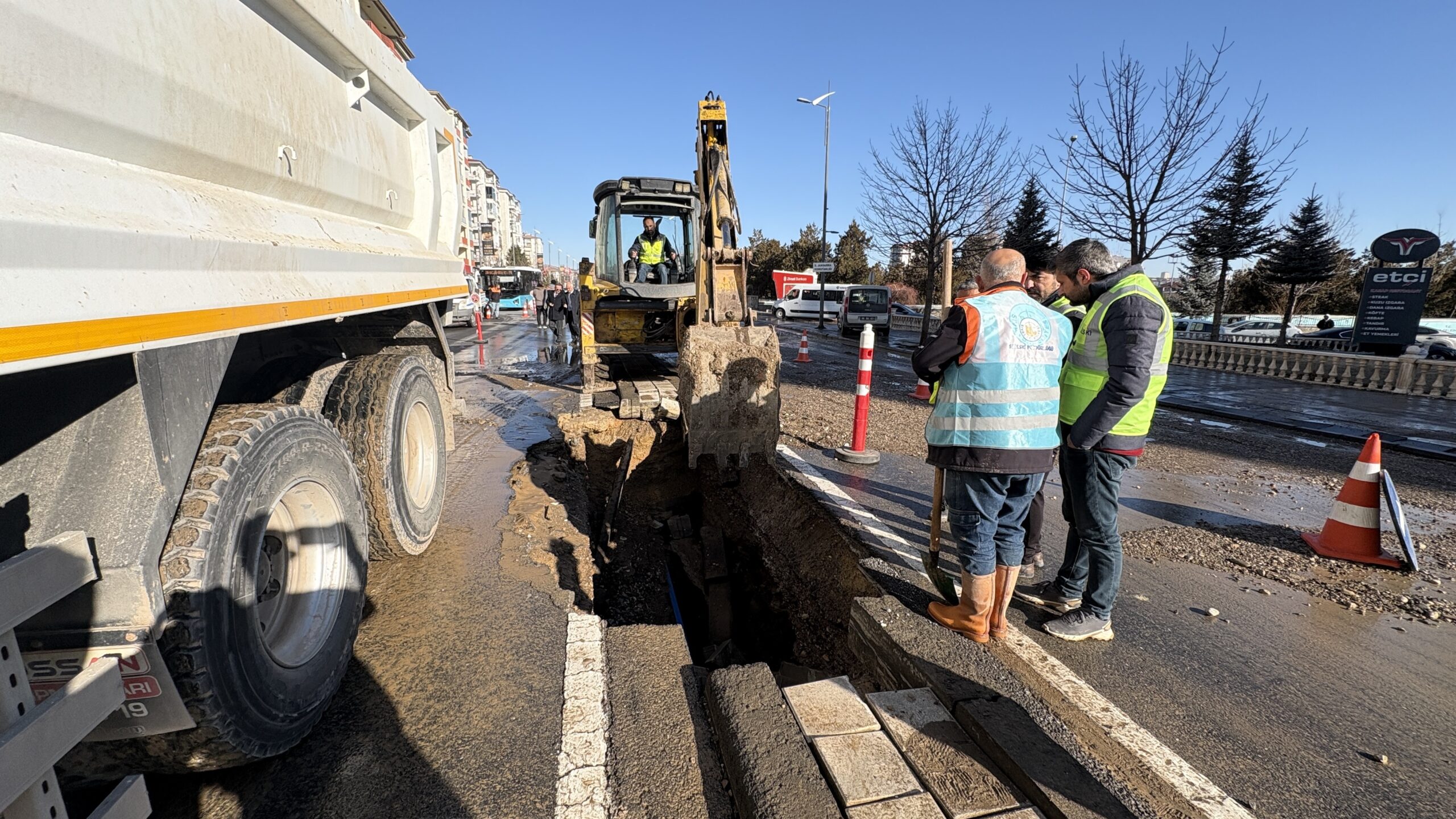 Olay, saat 07.00 sıralarında Kızılırmak Mahallesi Şehit Fethi Akyüz Caddesi'nde yaşandı. Yolun altından geçen ana şebeke su borusu patladı. Yüzeye çıkan şebeke suyu, caddeyi göle çevirdi. Kısa sürede çökmenin de yaşandığı yol, polis ekipleri tarafından trafiğe kapandı.