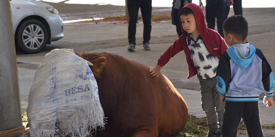 Hayvanlarını kesim yerlerine getirenlerin bir kısmı, yere yatırabilmek için çaba harcadı. Kesim sırasında genellikle büyükbaş hayvanlar, traktör arkasına takılan vinç yardımı ile kaldırılarak kurban edildi. Kesim alanlarına aileleri ile birlikte gelen çocukların da kurban kesimini izlediği görüldü.