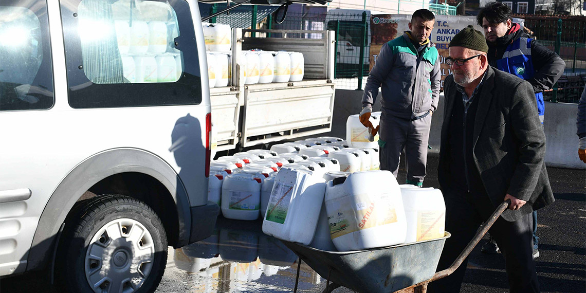 Ankara Büyükşehir Belediyesi, BelPlas AŞ’nin kendi öz kaynaklarıyla ürettiği sıvı gübreleri Kırsal Hizmetler Daire Başkanlığı koordinesinde Başkentli çiftçilere dağıtmaya devam ediyor. Organomineral ve mikrobiyal sıvı gübreler yüzde 50’si hibe, yüzde 50’si çiftçi katkı paylı olarak 20 litrelik bidonlarda verilirken destek sayesinde çiftçilerin gübre teminindeki maddi yükü de hafifletilmiş oluyor.