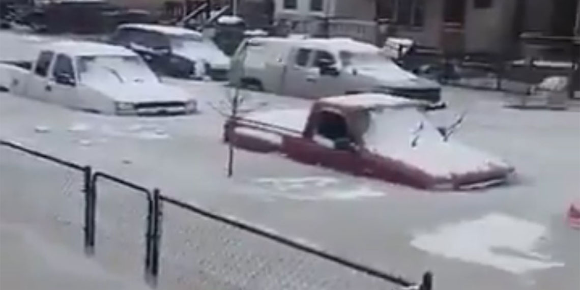 ABD’nin Michigan eyaletinde soğuk nedeniyle ana su borusu patladı sokaklar buzlu su altında kaldı.