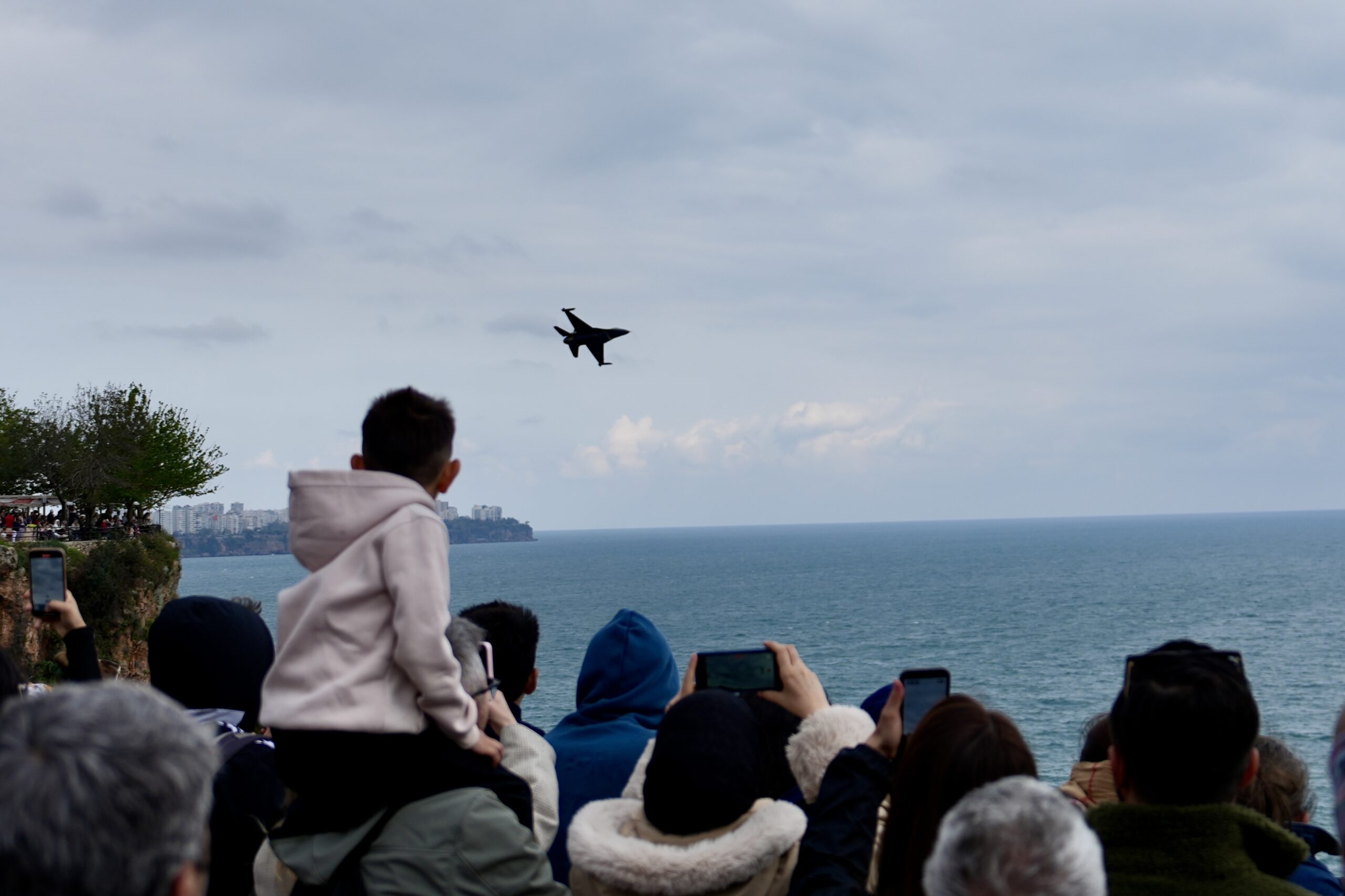 23 Nisan Ulusal Egemenlik ve Çocuk Bayramı kutlamaları kapsamında Konya Ana Jet Üssü’nden 2 gün önce kente gelen Solo Türk F-16 uçağı, saat 17.00 sıralarında Konyaaltı Sahil Antalya Yaşam Parkı semalarında gösteri uçuşu yaptı. Solotürk’ün gökyüzündeki gösterisini izlemek isteyenler, Konyaaltı Sahili’ni doldurdu. Saatler öncesinde dünyaca ünlü sahile gelen binlerce vatandaş, SOLOTÜRK’ün gösterisini heyecanla izledi. Sahildeki bir köpeğin koşarak uçağa eşlik ettiği anlar ise gülümsetti.