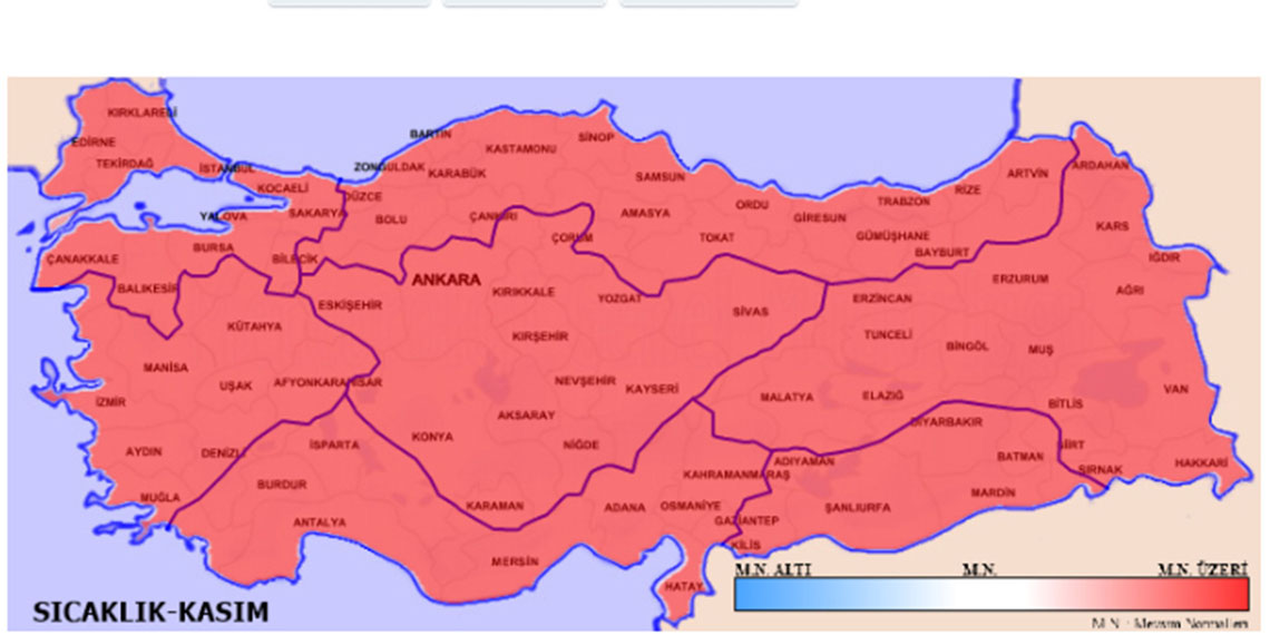 Kasım ayı tahminlerine göre ise hava sıcaklığının, yurt genelinde mevsim normallerinin 1 ila 2 derece üzerinde seyredeceği bekleniyor. Yağışın yurt genelinde mevsim normalleri civarında gerçekleşeceği öngörülüyor.