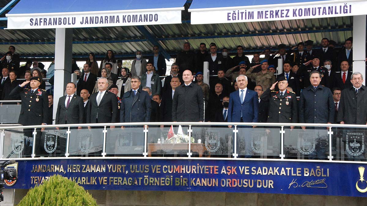 Safranbolu 125’inci Jandarma Komando Eğitim Alay Komutanlığı’nda, 33’üncü Dönem Jandarma Uzman Erbaş Komando Temel Eğitim Kursu’nun kapanış törenine; İçişleri Bakanı Süleyman Soylu, Jandarma Genel Komutanı Orgeneral Arif Çetin, Karabük Valisi Fuat Gürel, Karabük Belediye Başkanı Rafet Vergili ve aileler katıldı. Törende konuşan Bakan Soylu, “Bu sabaha karşı sahuru Diyarbakır İl Jandarma Komutanlığı’nda yaptım.