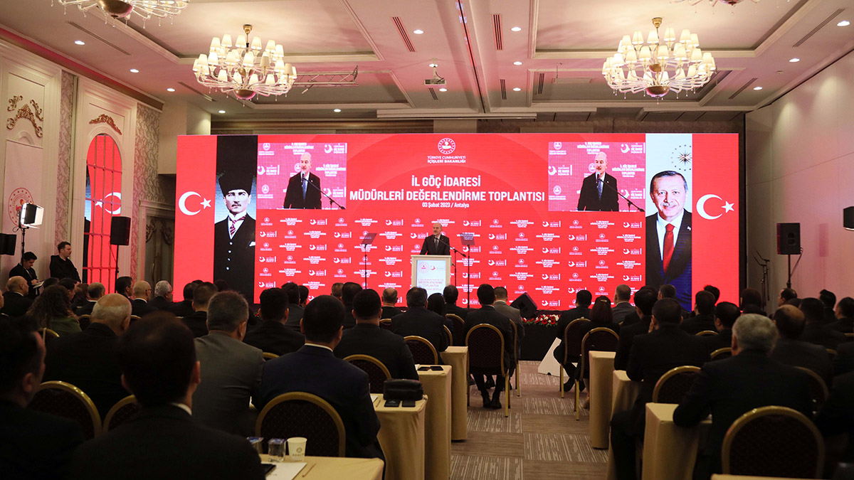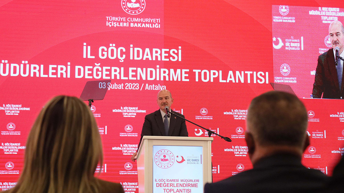 İçişleri Bakanı Süleyman Soylu, Antalya’da Göç İdaresi Başkanlığı’nın İl Göç İdaresi Müdürleri Toplantısı’nda konuştu. Toplantıya Antalya Valisi Ersin Yazıcı, AK Parti Antalya milletvekilleri Mustafa Köse, Atay Uslu, İbrahim Aydın ve Tuba Vural Çokal, Göç İdaresi Başkanı Savaş Ünlü ile 81 ilin il göç idaresi müdürleri katıldı.