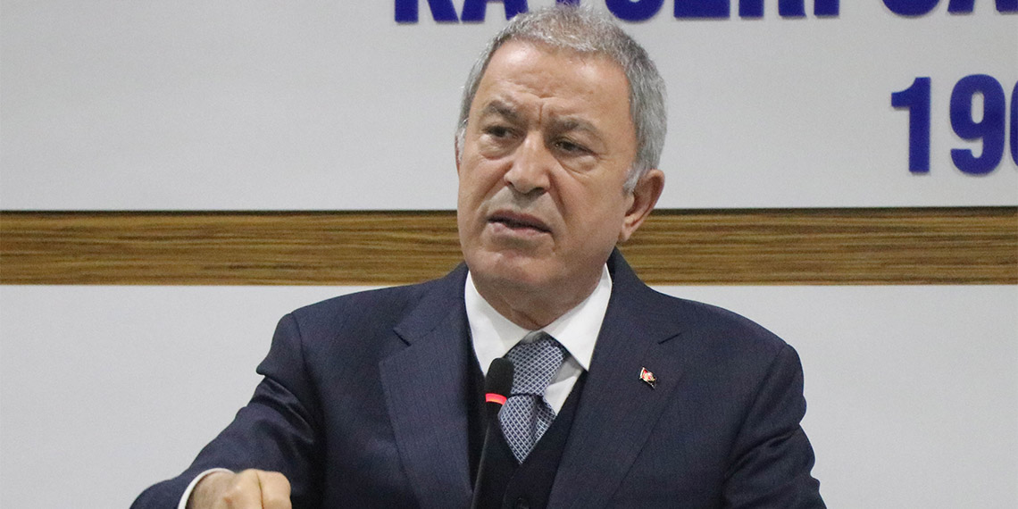 Yerli ve milli savunma sanayinin önemine vurgu yapan Akar, “Sanayide ticarette, üretimde ve bunun sonunda da silahlı kuvvetlerimizin ihtiyaçlarını kendi kendimize karşılayabilecek bir hale gelmemiz lazım. Bizim İHA’larımız vardı. Parasını verdiğimiz halde İsrail bakımını yapmadı. Şimdi içinde bulunduğumuz ortamda dost dediğimiz, müttefik dediğimiz ülkelerle yaptığımız temaslarda hiç kimse ambargo kelimesini kullanmıyor. Artık savaş ilanı falan kalmadı. Savaşıyoruz zaten. Ukrayna, Rusya savaşı, çok tipik bir örnek. Orada ne oluyor? Ukrayna Rusya’ya karşı bir mücadele veriyor. Ukrayna’nın arkasında kimler var? Herkes var. Burada savaş ilanı yok. Bu PKK, YPG, DEAŞ, FETÖ kim bunlar? Bunu da tek başına da yapabilirler mi? Kim var arkalarında? Herkes var. Dolayısıyla bir savaş içindeyiz. Şiddeti azalıyor, çoğalıyor, yayılıyor, daralıyor” diye konuştu.