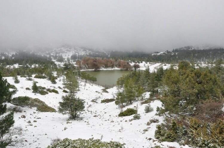 Manisa’da sabah saatlerinde başlayıp, etkisini sürdüren kar yağışı nedeniyle Spil Dağı Milli Parkı, beyaz örtüyle kaplandı.