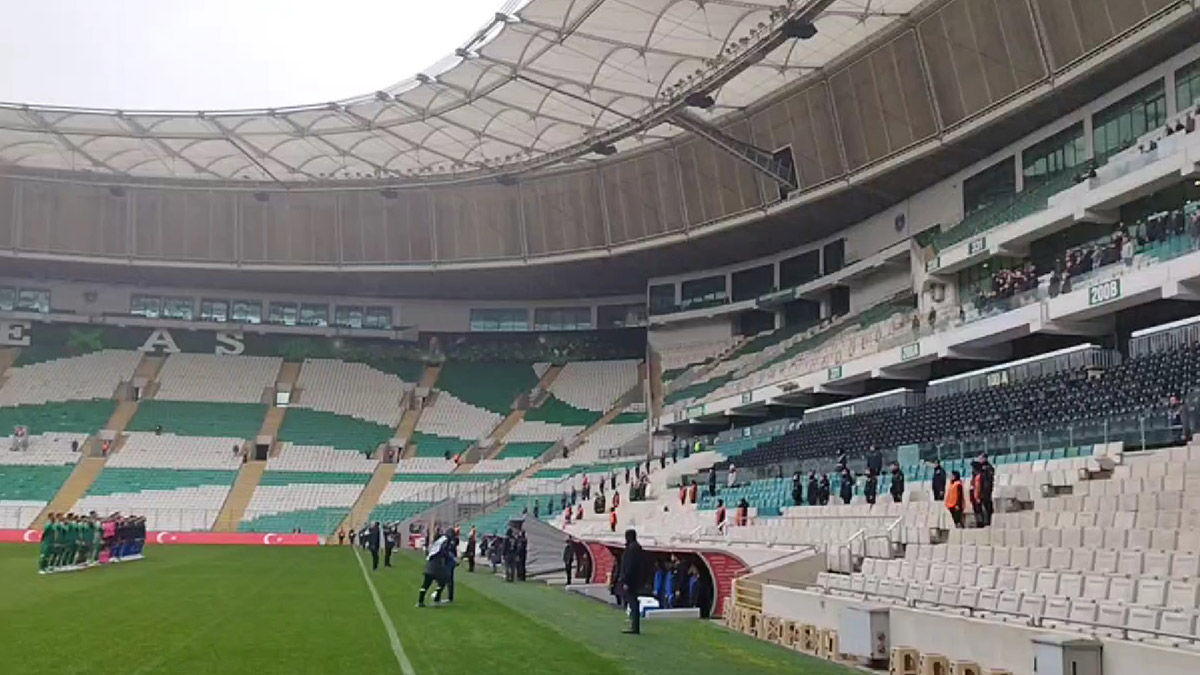 Bursa’da seyircisiz oynanan Bursaspor-Ankaraspor maçı öncesinde stadyumdaki ses sistemi arızalanınca İstiklal Marşı, saha kenarında hazır bekleyen ambulanstan seslendirilerek okundu.
