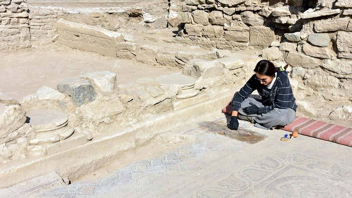 Muğla’nın Yatağan ilçesindeki Stratonikeia Antik Kenti’nde devam eden kazı çalışmalarında 1600 yıllık mozaikler bulundu