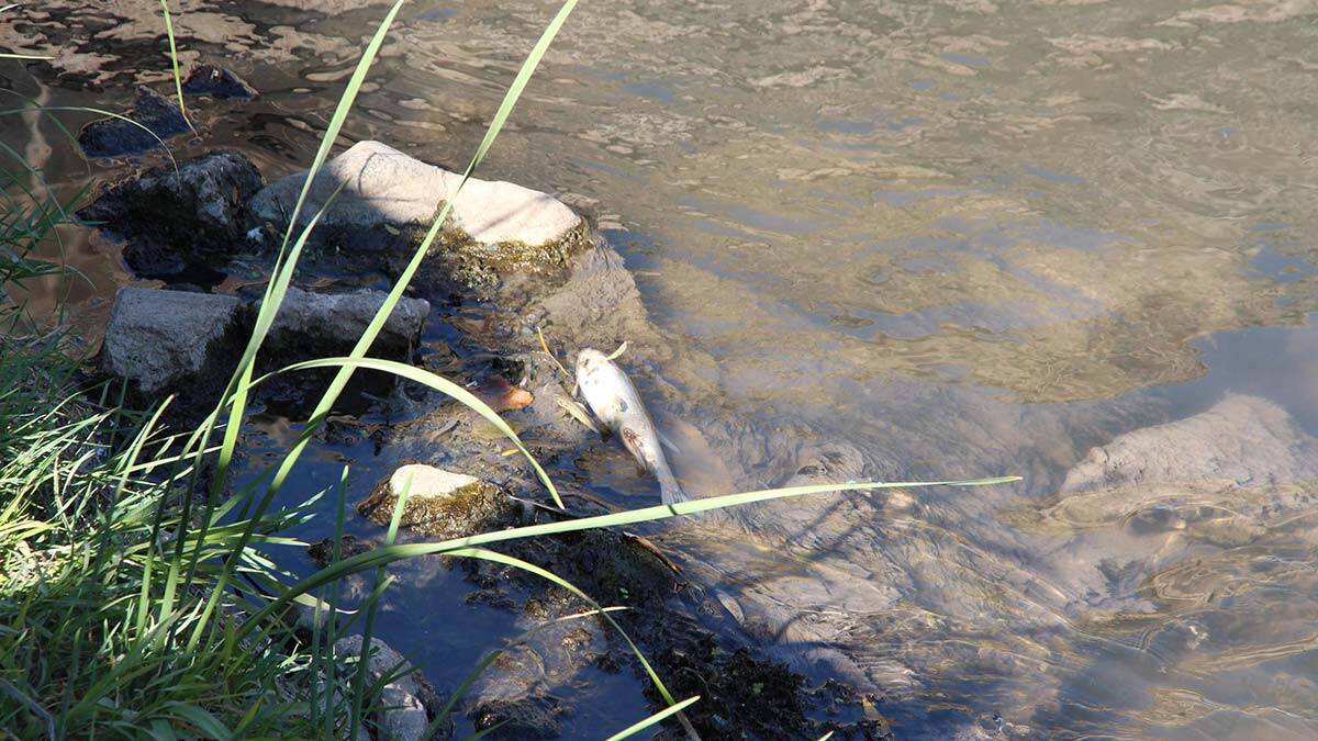 Kuraklık nedeniyle su seviyesi düşen nehirdeki ölü balıklar etrafa kötü koku yaymaya başladı.