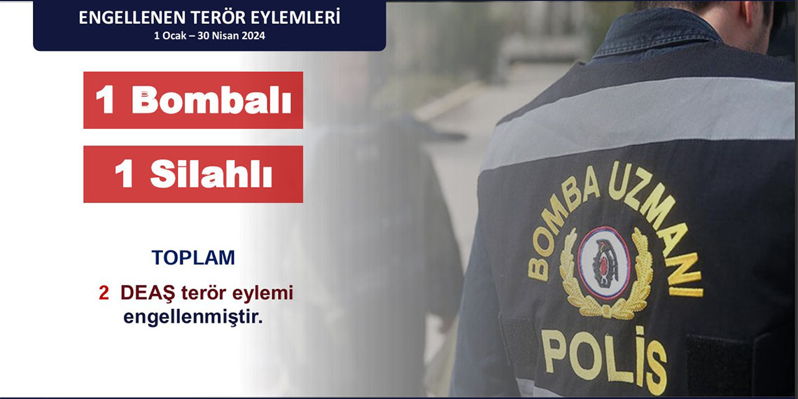 Dini istismar eden terör örgütlerine karşı yapılan 137 operasyonda 465 şahıs yakalandı, 74 şahıs tutuklandı, 71 şahsa adli kontrol tedbiri uygulandı. Sol terör örgütlerine karşı yapılan 61 operasyonda, 178 şahıs yakalandı, 72 şahıs tutuklandı, 76 şahsa adli kontrol tedbiri uygulandı. Terörün finans kaynaklarını çökertmek için yapılan 65 operasyonda 132 şahıs yakalandı, 12 şahıs tutuklandı, 37 şahsa adli kontrol tedbiri uygulandı. Bu operasyonlarda; 247 bin 620 Türk lirası, 20 bin 968 Dolar, 13 bin 880 Euro ele geçirildi. Yine bu kapsamda 1’i bombalı, 1’i silahlı olmak üzere DEAŞ tarafından planlanan 2 terör eylemi engellenmiştir” ifadelerini kullandı.