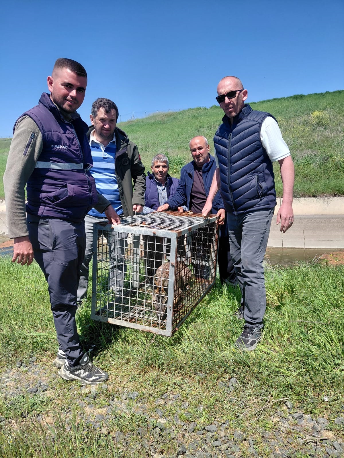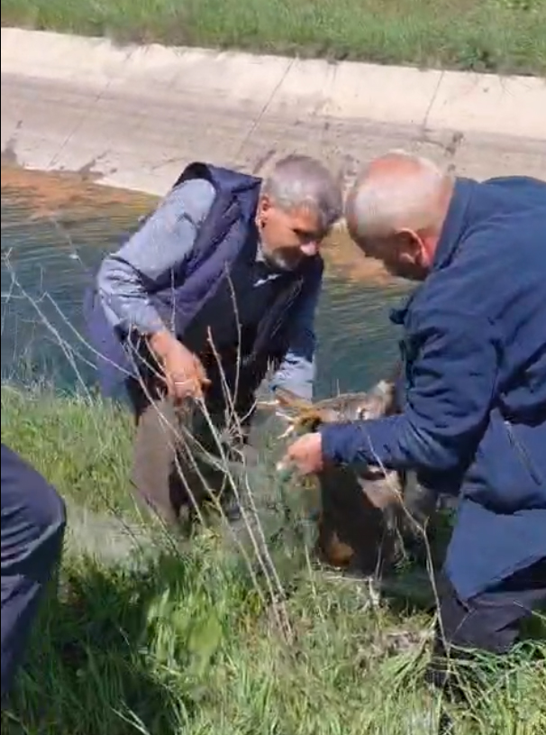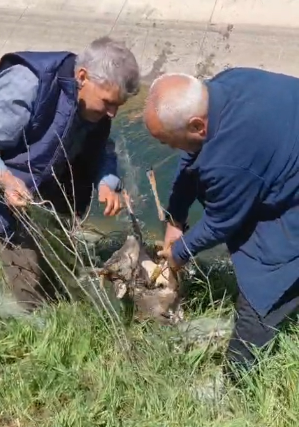 Edirne’nin İpsala ilçesine bağlı Koyuntepe köyünde sulama kanalına düşerek balık ağlarına dolanan karaca, çevredeki çiftçiler tarafından kurtarıldı.