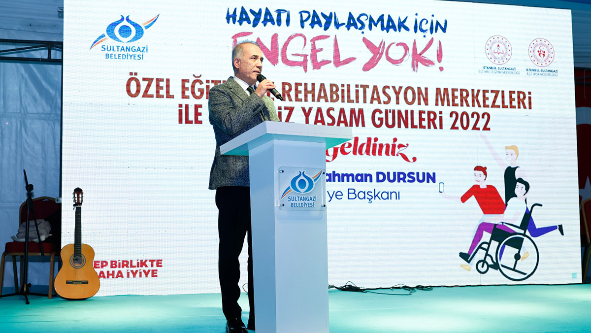 Engelleri ortadan kaldırmak ve engelli bireylerin yaşam kalitesini yükseltmek adına sürekli çalıştıklarını belirten Sultangazi Belediye Başkanı Av. Abdurrahman Dursun, “Bütün rehabilitasyon merkezlerimizle, engellilere yönelik faaliyet gösteren birçok kurumumuzla beraber güzel bir etkinliğe imza attık. Engelleri ortadan kaldırmak adına, onların hayata daha sıkı tutunması için büyük bir gayret veriyoruz.